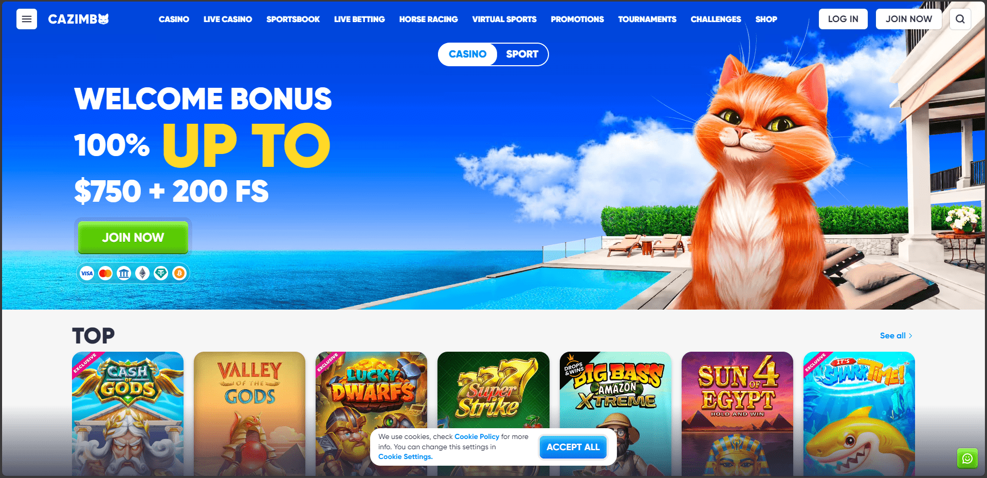 Cazimbo provides a fantastic selection of gaming options. They collaborate with more than 40 developers, some of the most renowned in the field. More than 3,000 casino games are available for you to select from, including video slots, jackpot and Megaways, blackjack, roulette, baccarat, poker, and more. They also offer a wide selection of betting markets on almost all of the world's biggest and minor sporting events at both stages – pre-match and live. In addition, it is also possible to bet on virtual sports.